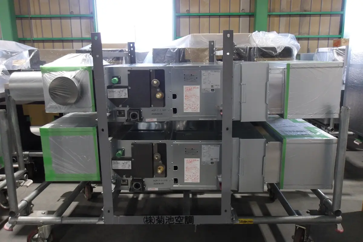 菊池空調では、通常のエアコン配管工事に加え、自社工場での室内機・室外機ユニット先行製作を取り入れることで、現場での作業負担を軽減し、安全性と品質の向上を実現しています。
